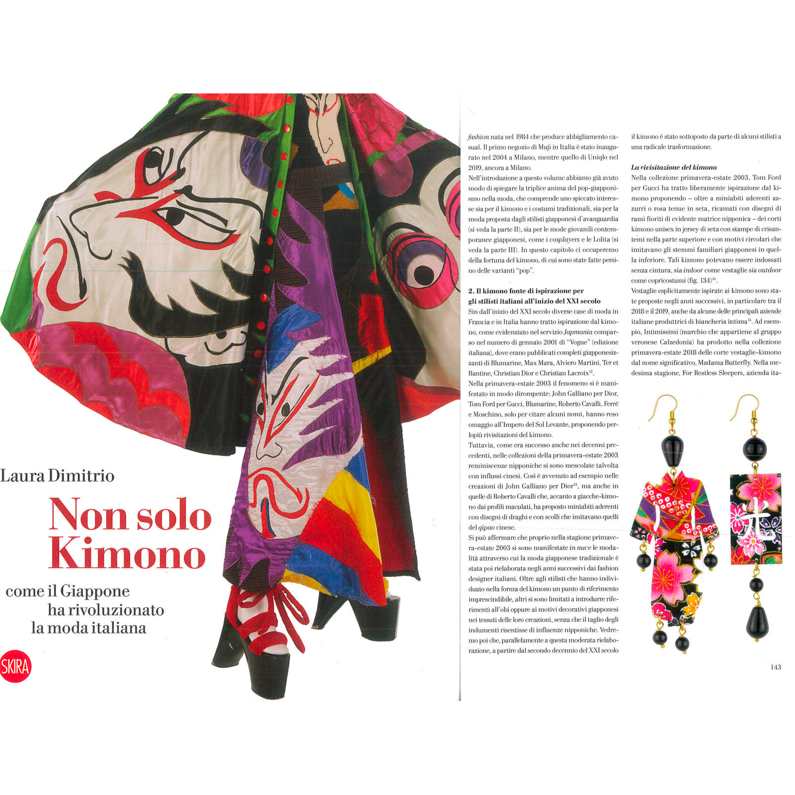 The volume is accompanied by a rich iconographic apparatus, with images taken from fashion magazines, photographs and sketches from the archives of museums and fashion houses. With a preface by Akiko Fukai, director and Curator Emeritus of the Kyoto Costume Institute, leading expert on Japanese fashion. Professor and scholar of fashion history, Laura Dimitrio has carried out specific studies on Japanism and Italian fashion of the twentieth century. Among her publications are essays on Italian Japonism, on the costumes for the first performance of Madama Butterfly and on the working conditions of seamstresses in the 20th century.