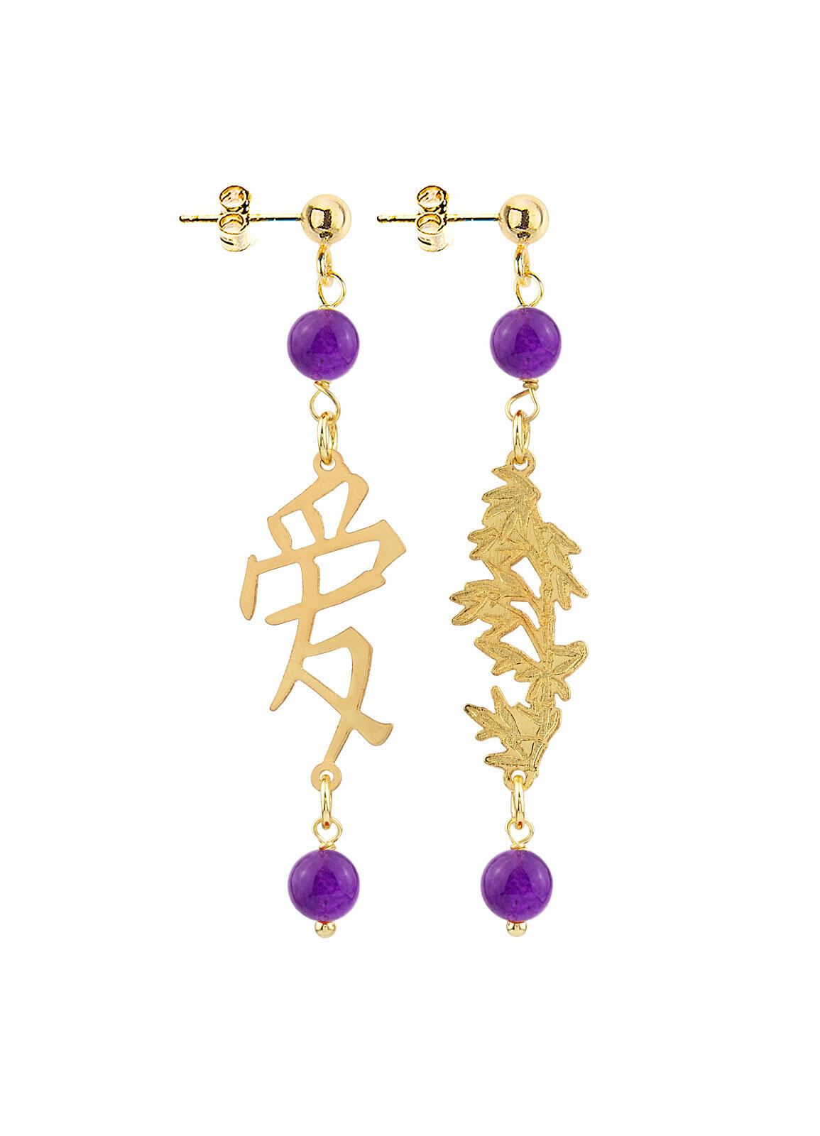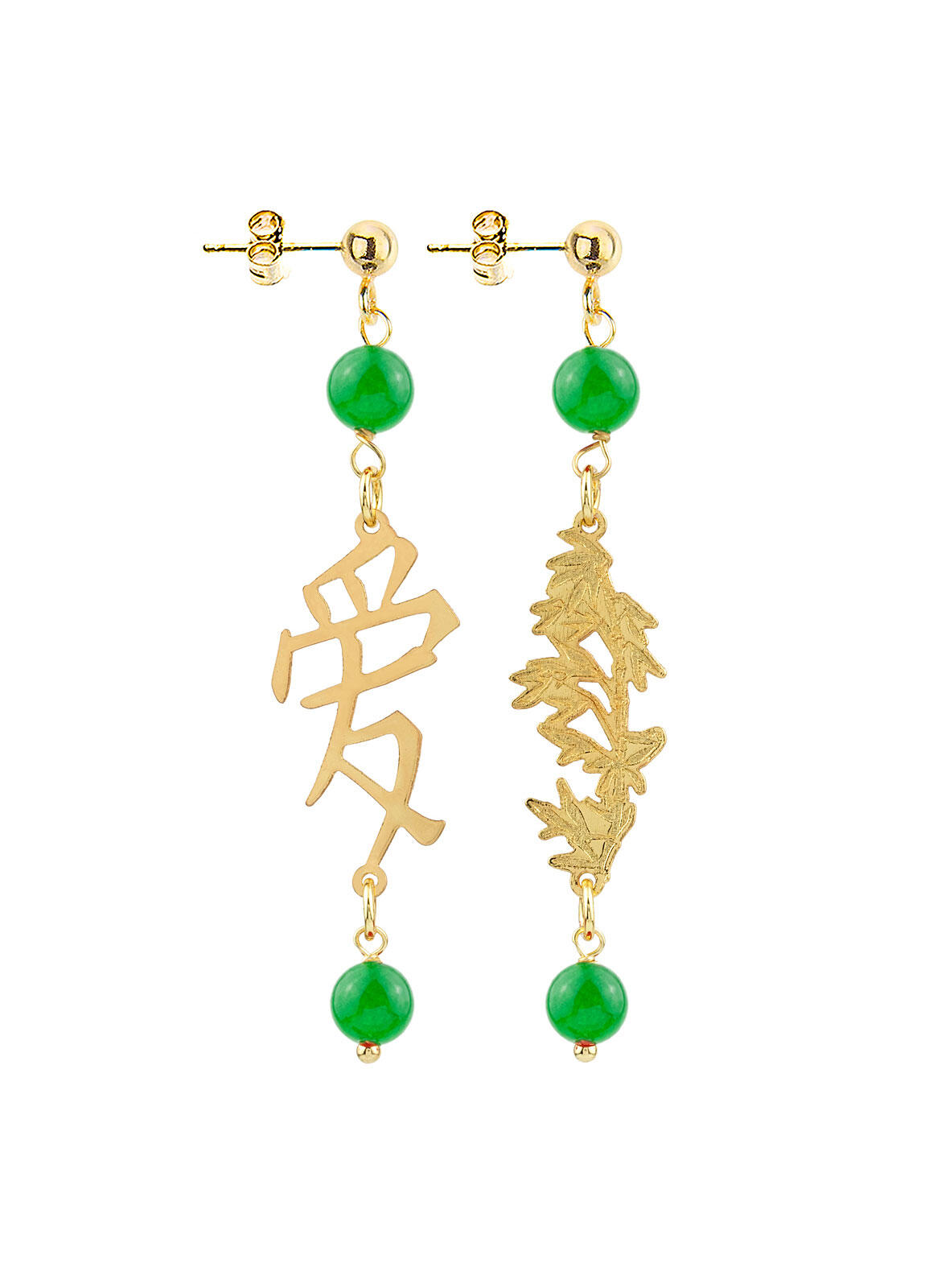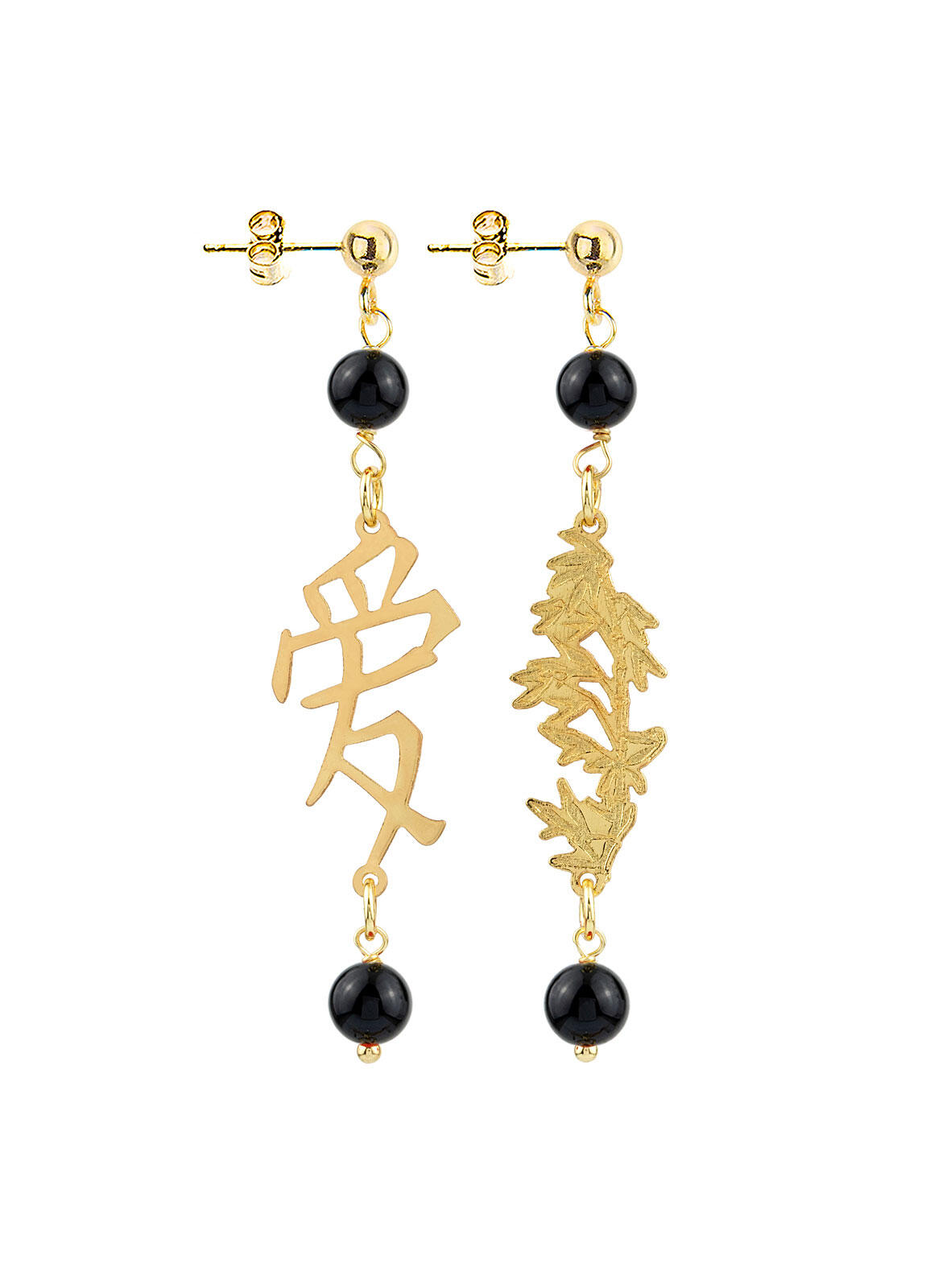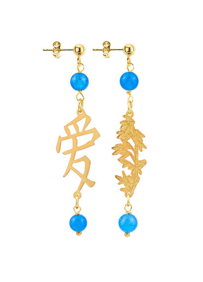 Gold plated brass and natural stone earrings. Length 6 cm. Pin and butterfly closure. Made in Italy.