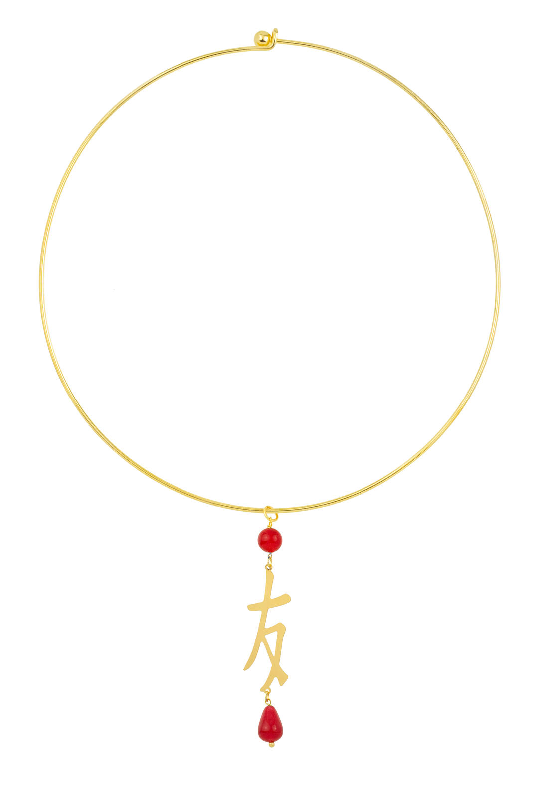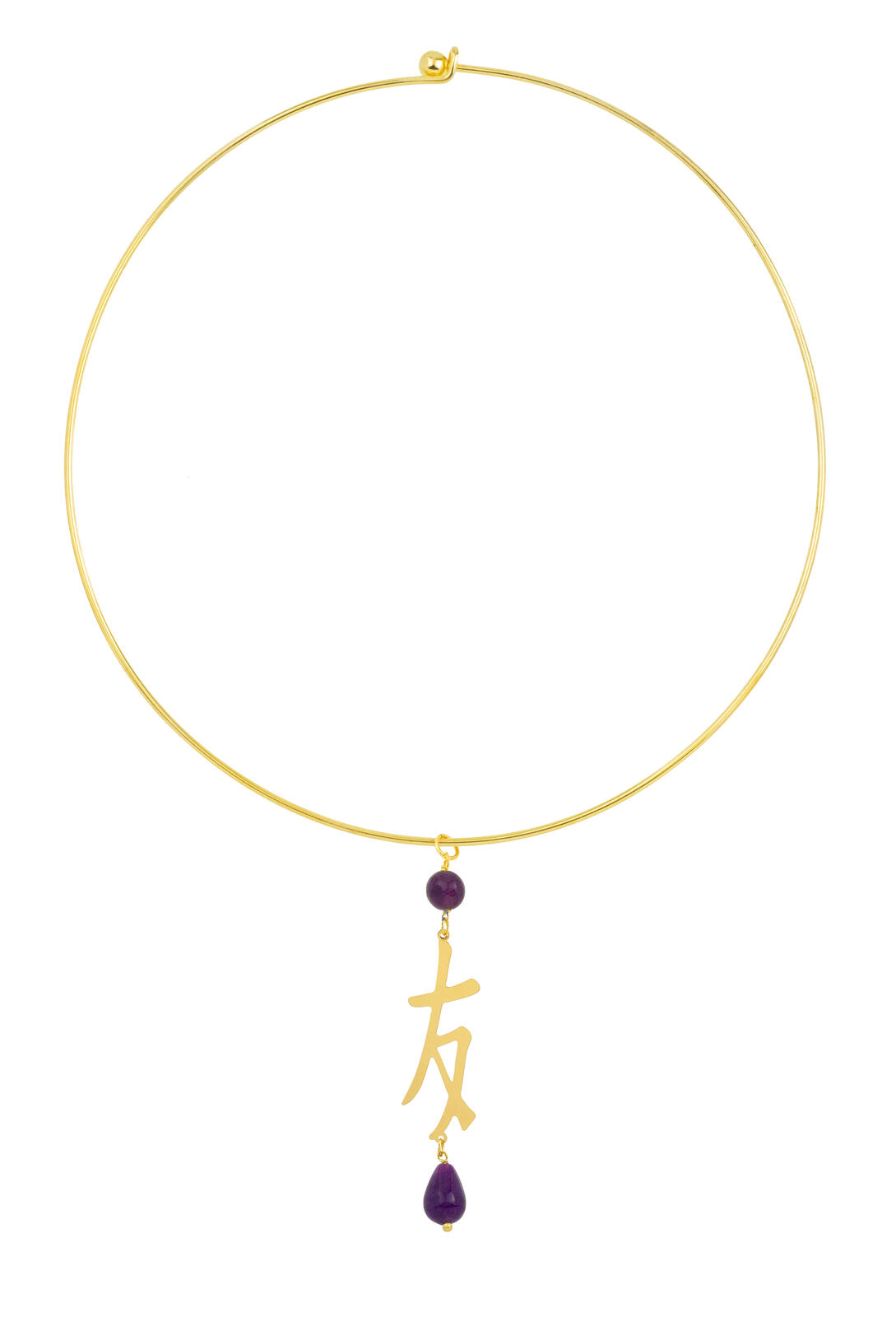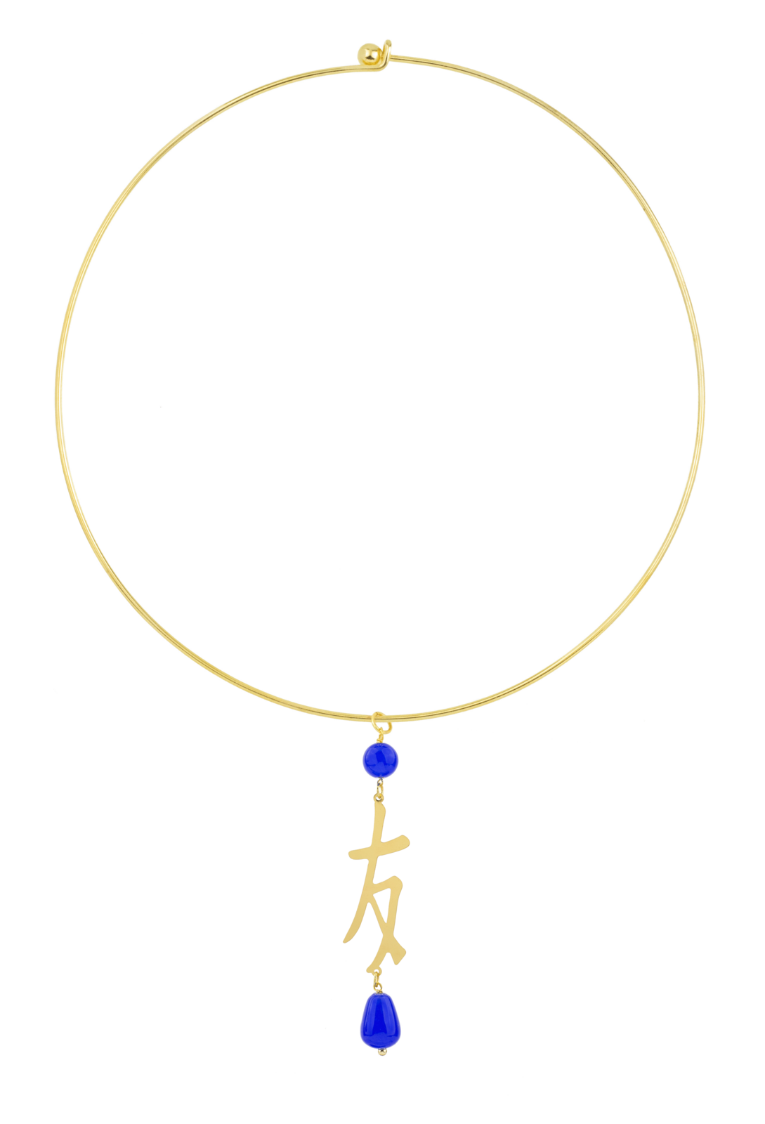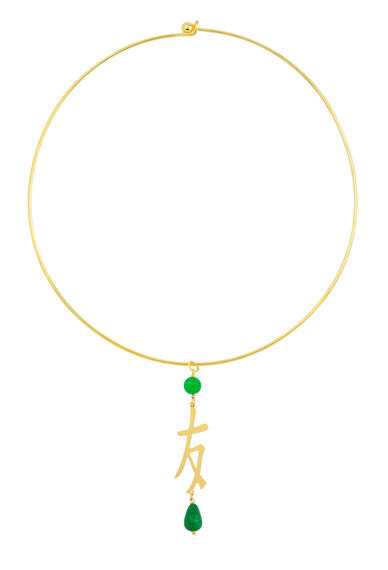 Gold plated brass necklace and natural stones. Necklace diameter 15 cm. Pendant length 7 cm. Made in Italy.