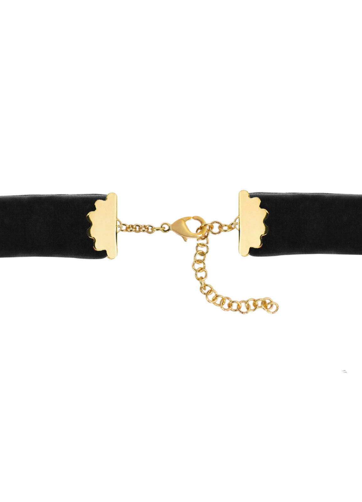 Necklace in gold-plated brass and aluminum, velvet, elements, and natural stones. Lobster clasp closure. Made in Italy.