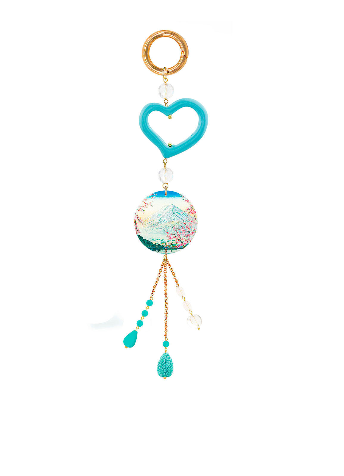 Charm Bag composti da una capsula piatta stampata. Elementi in ottone galvanizzato oro e pietre naturali. Lunghezza 25/26 cm. Diametro 3,5 cm. Made in Italy