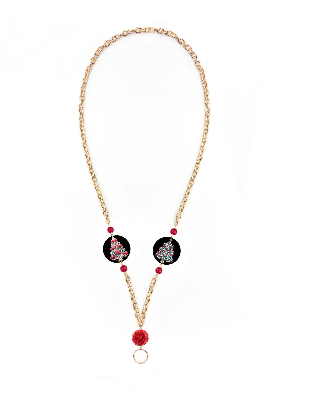 Accessorio porta occhiali con catena in ottone bagnato oro ed elementi della collezione The Circle. Lunghezza catena 75 cm. Lunghezza elemento 7 cm. Taglia Unica. Made in Italy