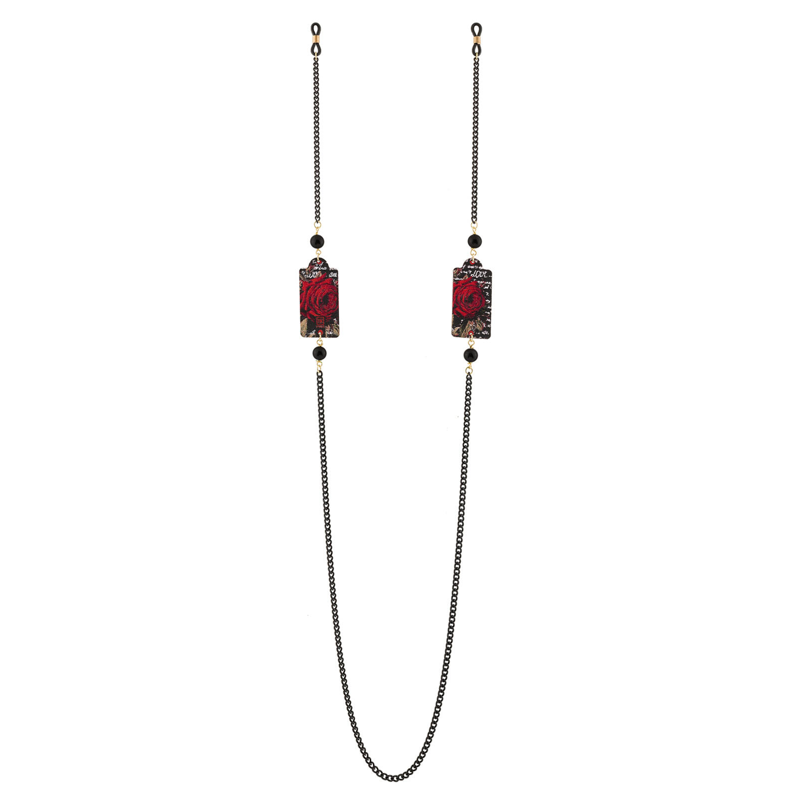 Eyeglass holder accessory with black rhodium-plated brass chain and fabric elements from The Tag collection. Chain length 85 cm. Element length 7 cm. One size. Made in Italy