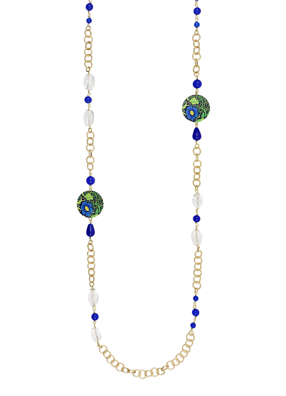 Necklace with The Circe capsule and natural stones. Gold galvanized brass chain measuring 110 cm. Pendant length 6.5cm. Made in Italy