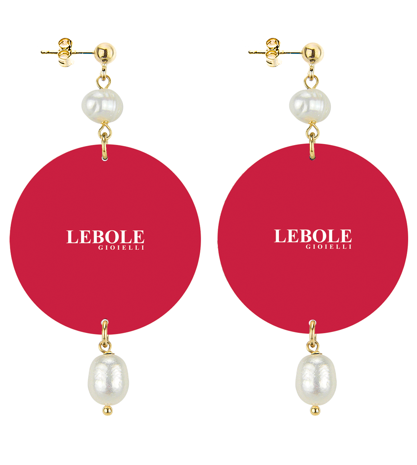 The earrings from Lebole Maison's The Circle collection are made with flat capsules printed on tinplate, mounted in gold-plated brass and natural stones. The asymmetry is given by the different images imprinted on the capsule.