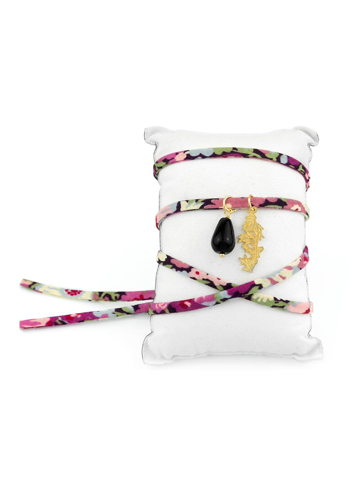 Non solo orecchini: i piccoli amuleti si trasformano anche in collane con catene ad anelli o nastri colorati in tessuto, decorati con pietre abbinate e versatili da indossare come collane, choker o braccialetti. La collezione include anche anelli, gemelli e bracciali rigidi e morbidi,