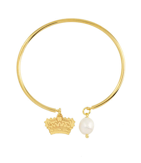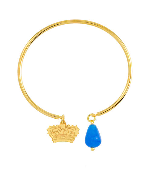 Rigid bracelet in gold-plated brass. Element in gold-plated brass and natural stones. Diameter 6 cm. Pendant length 2 cm. Made in Italy.
