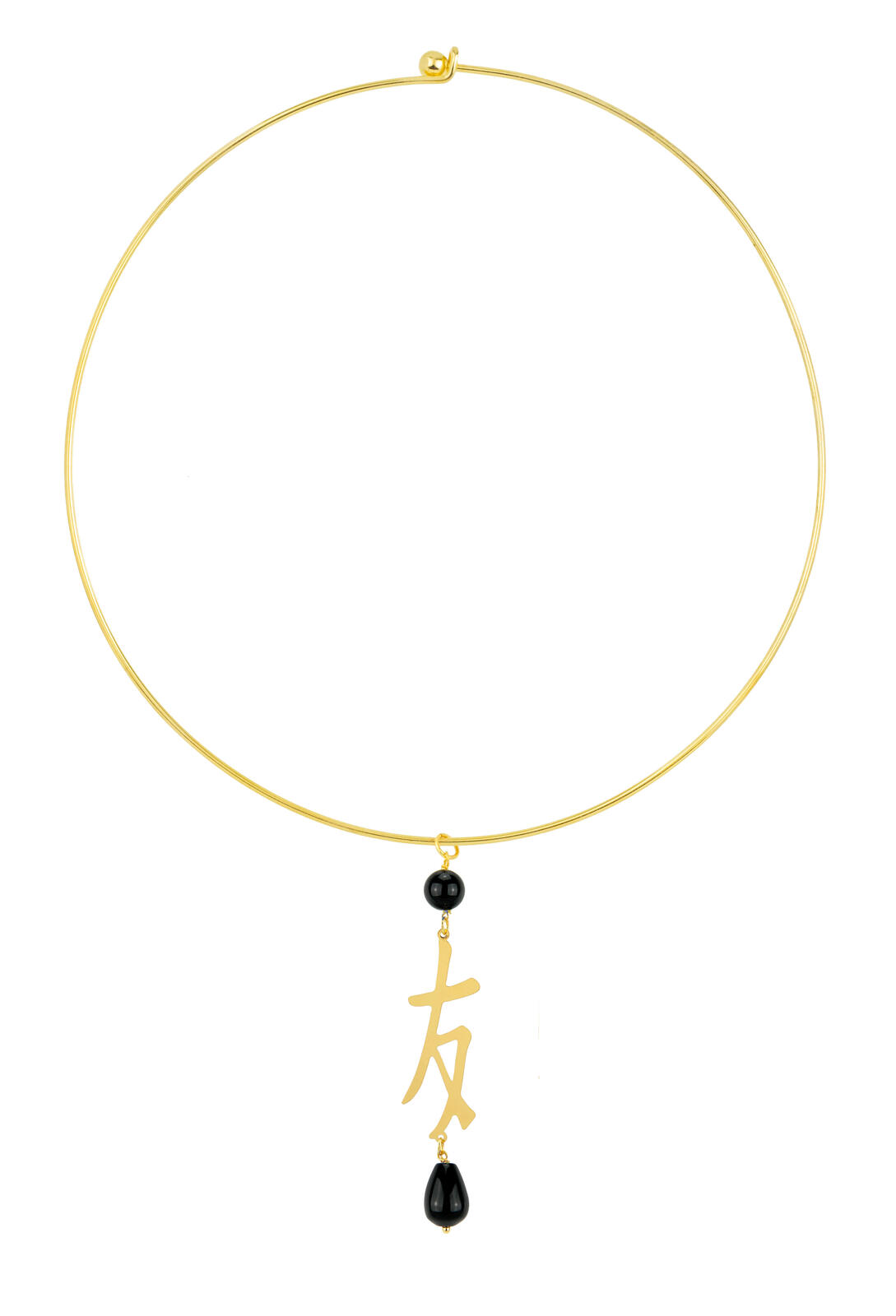 Rigid necklace in gold-plated brass. Kanji Friendship and natural stones. Diameter 15 cm. Pendant length 2 cm. Adjustable. Made in Italy.