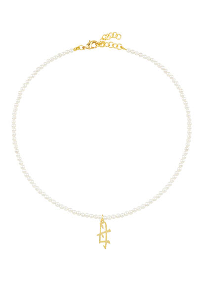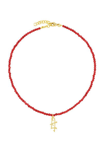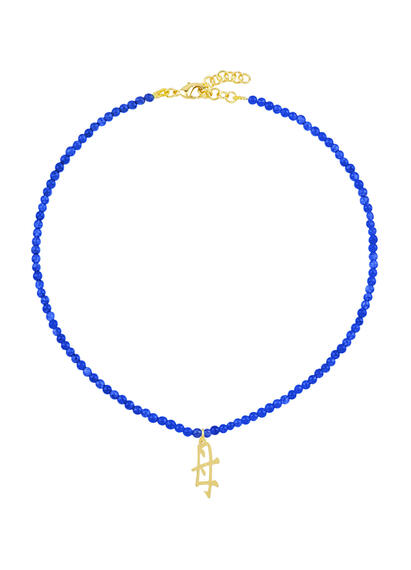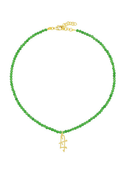 Necklace in natural colored stones, Kanji Mamma in gold-plated brass. Chain length 40 cm. Pendant length 2 cm. Made in Italy.