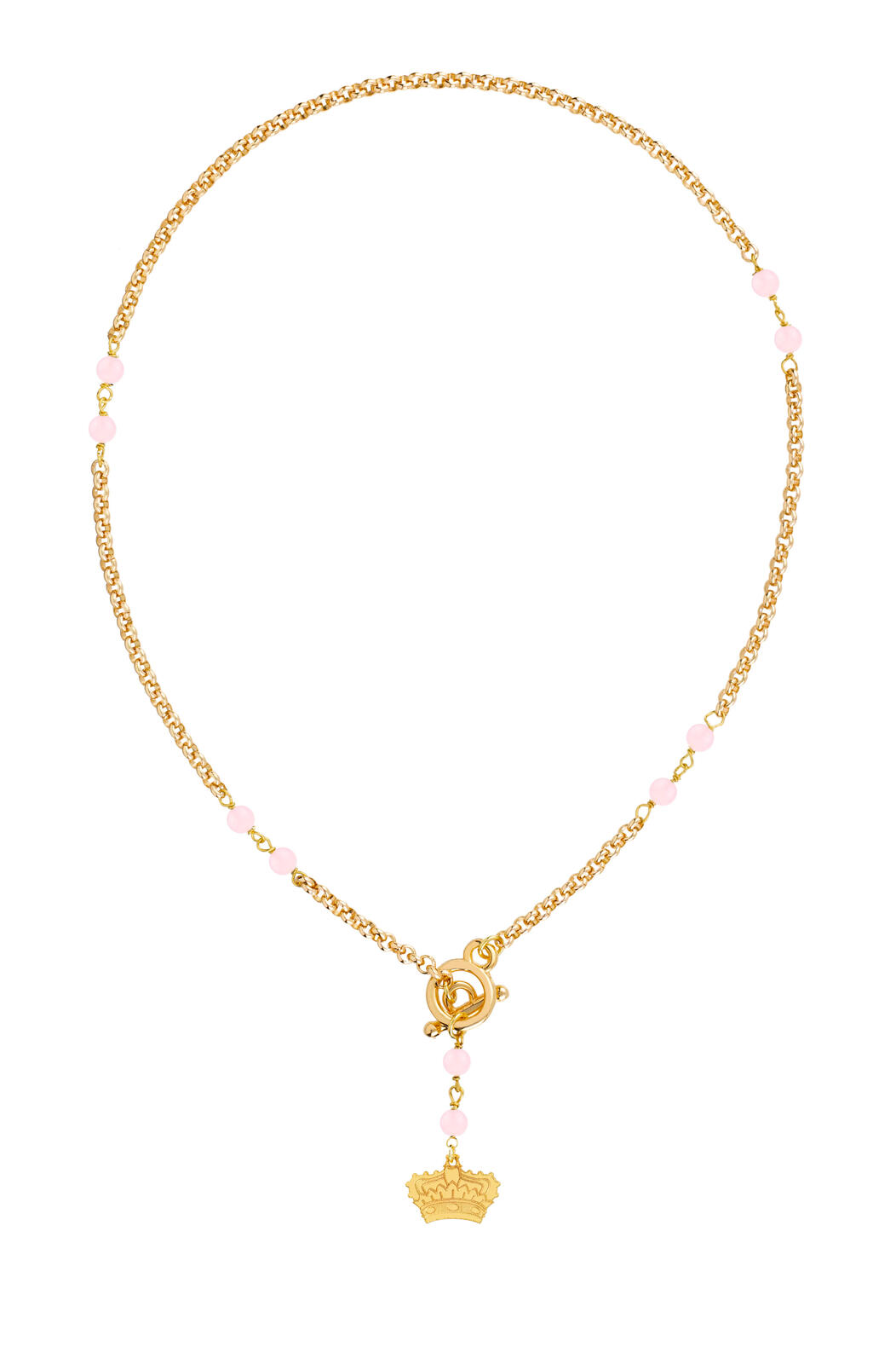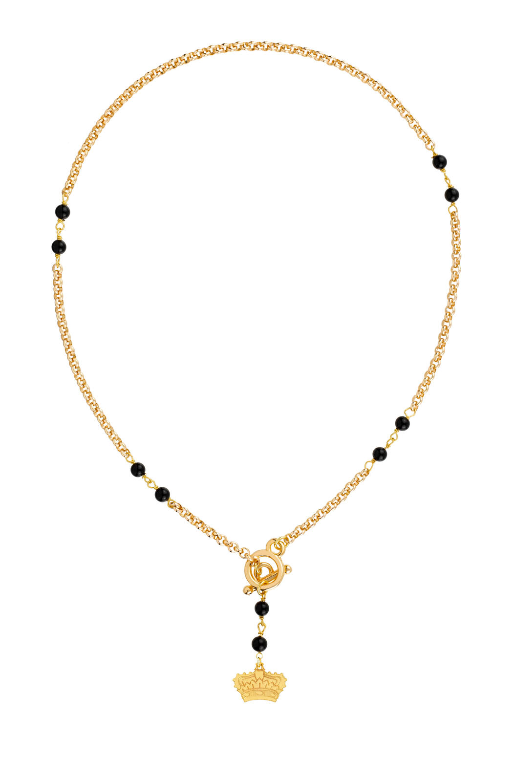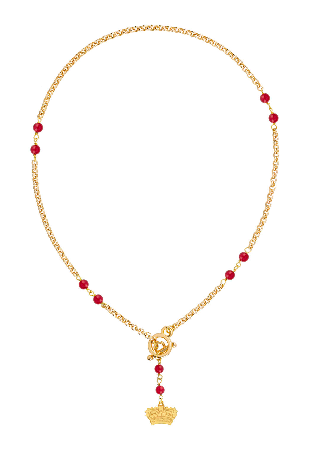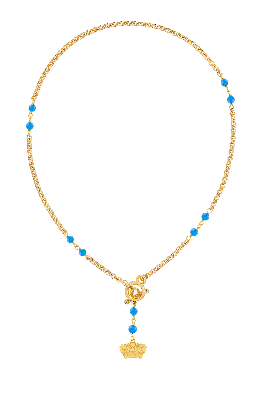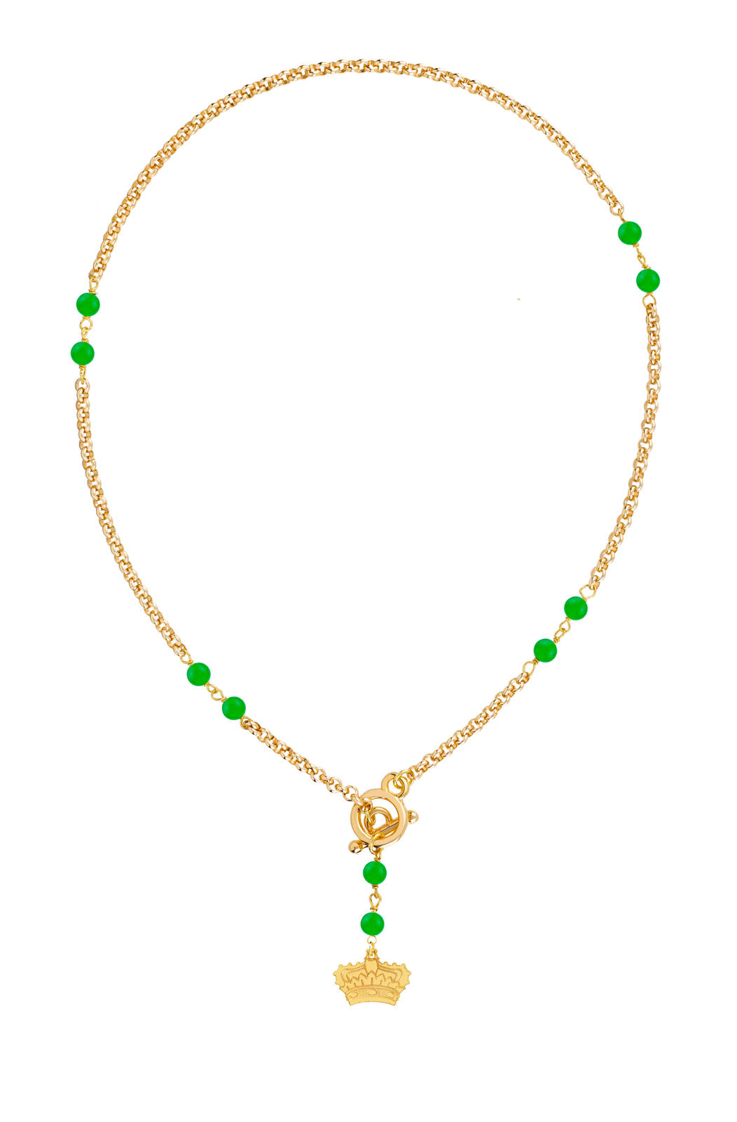 Gold-plated aluminum necklace, gold-plated brass element, natural stones. Chain length 40 cm. Pendant length 4.5 cm. Made in Italy.