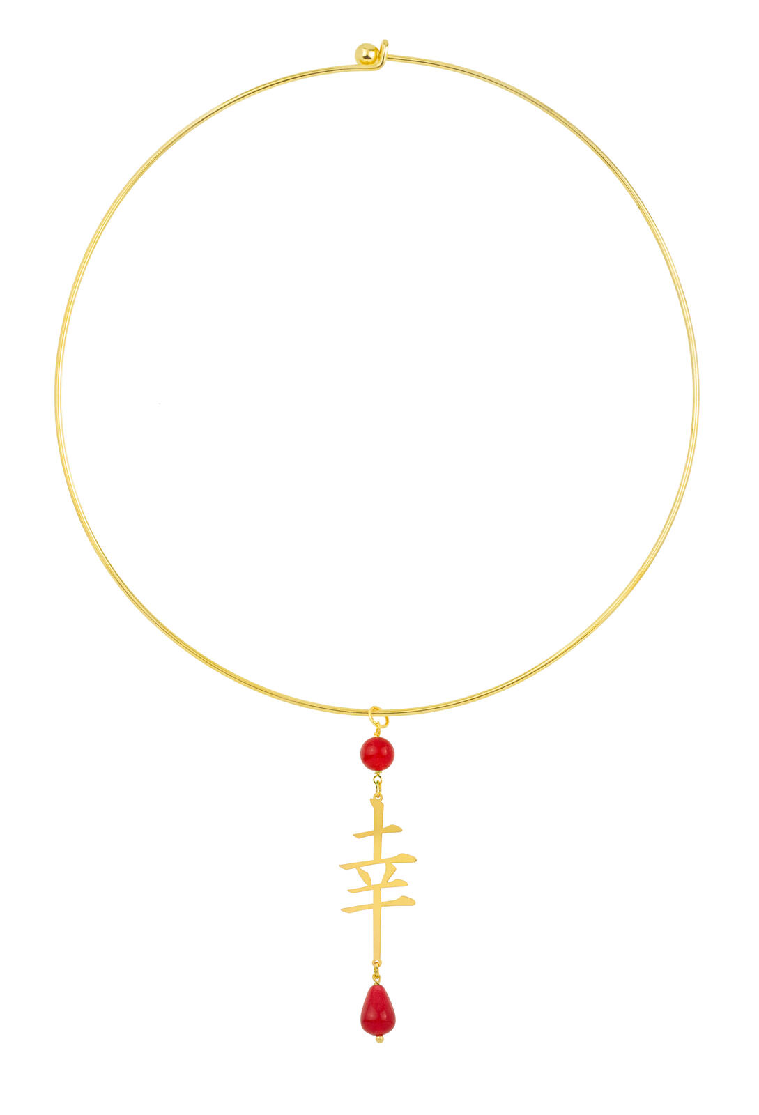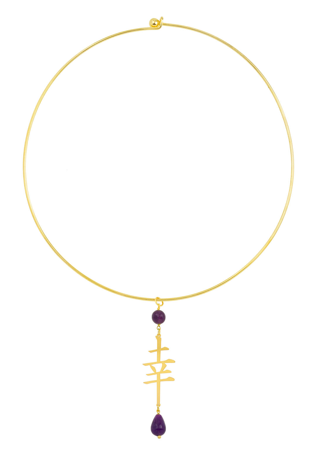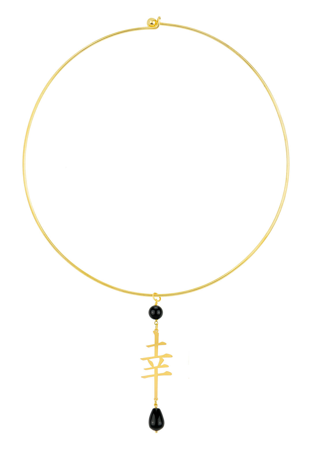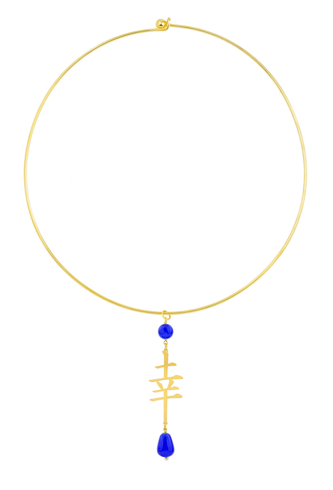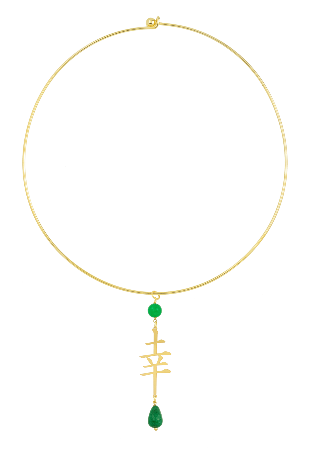 Collana in ottone galvanizzato oro e pietre naturali. Diametro collana 15 cm. Lunghezza ciondolo 7 cm. Made in Italy.