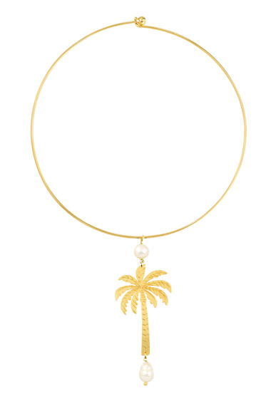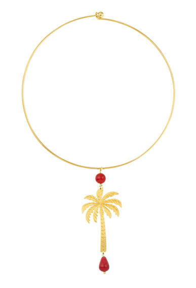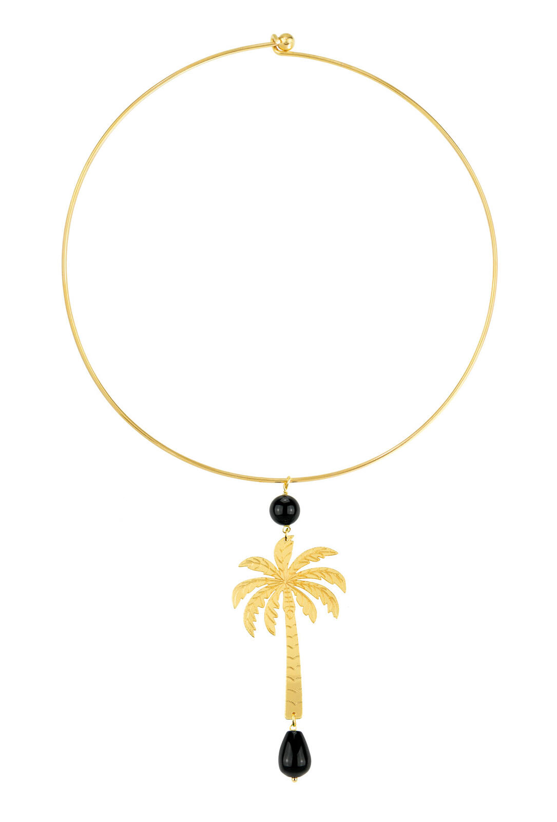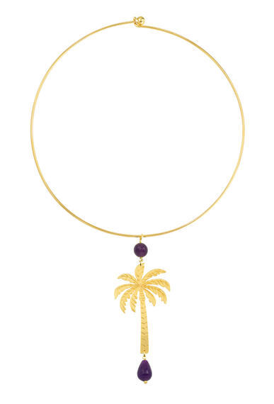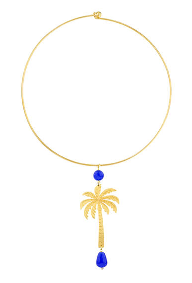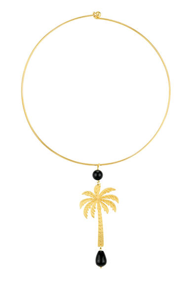 Collana in ottone galvanizzato oro e pietre naturali. Diametro collana 15 cm. Lunghezza ciondolo 8,5 cm. Made in Italy.