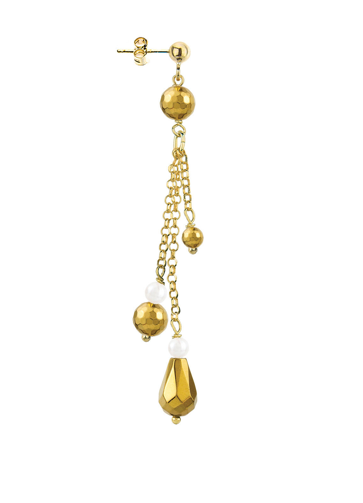 Orecchino singolo in ottone galvanizzato oro e pietre naturali. Lunghezza 7 cm. Made in Italy
