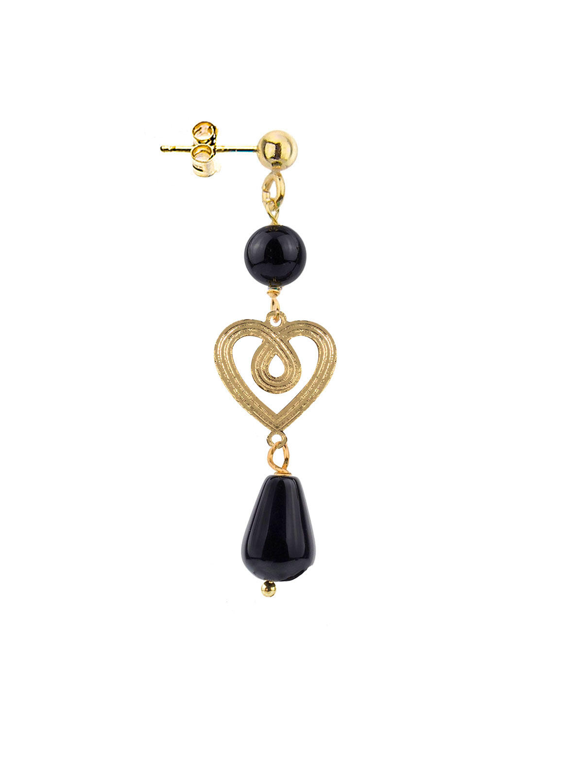 Orecchino singolo in ottone galvanizzato oro e pietre naturali. Lunghezza 4 cm. Made in Italy