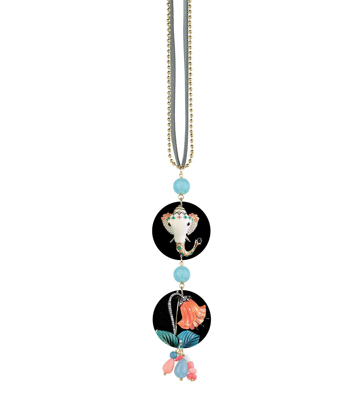 Collana Fondo Nero Elefante E Fiore
