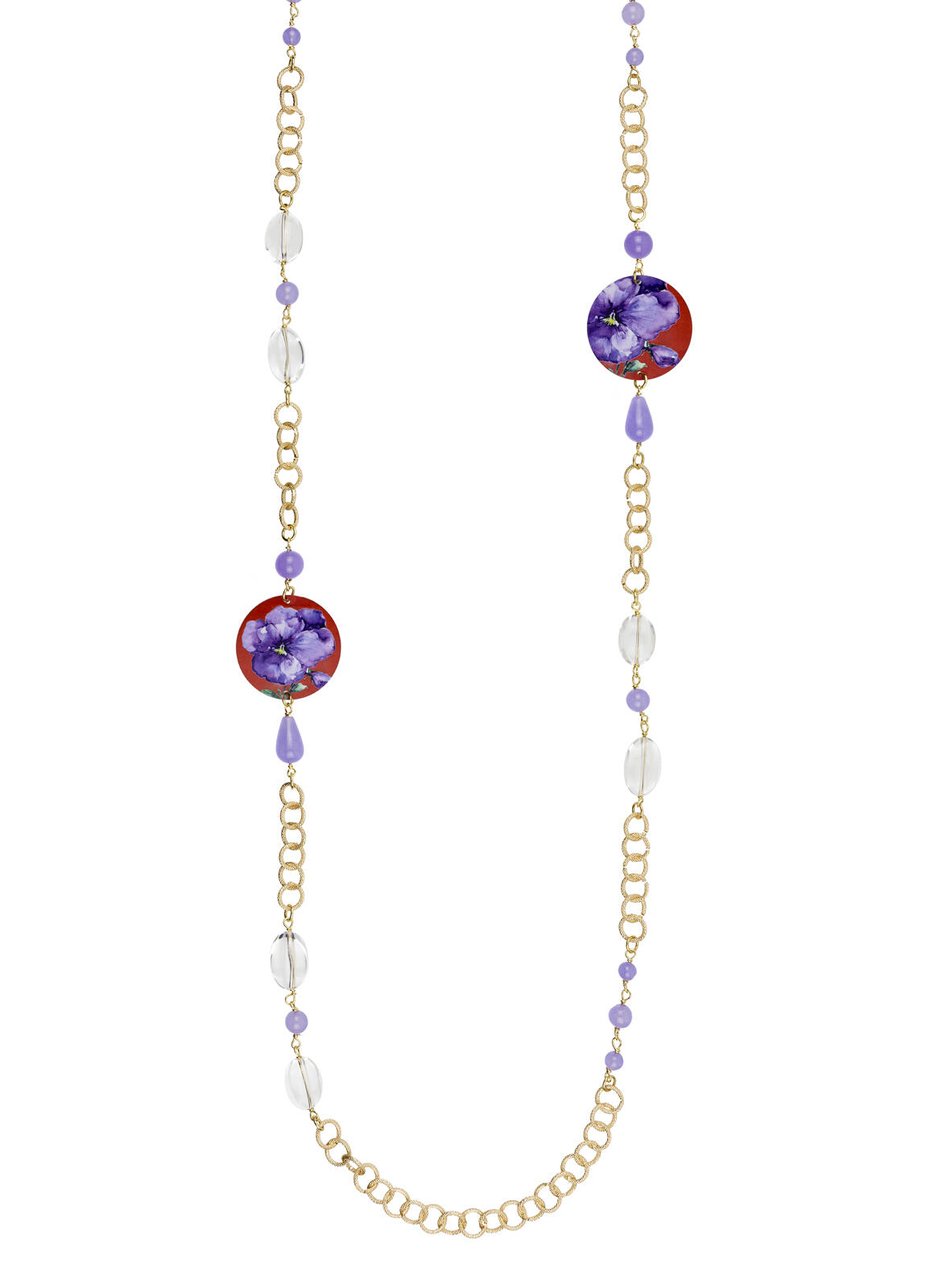 Collana con capsula The Circle e pietre naturali. Catena in ottone galvanizzato oro misura 110 cm. Lunghezza ciondolo 8,5 cm. Made in Italy