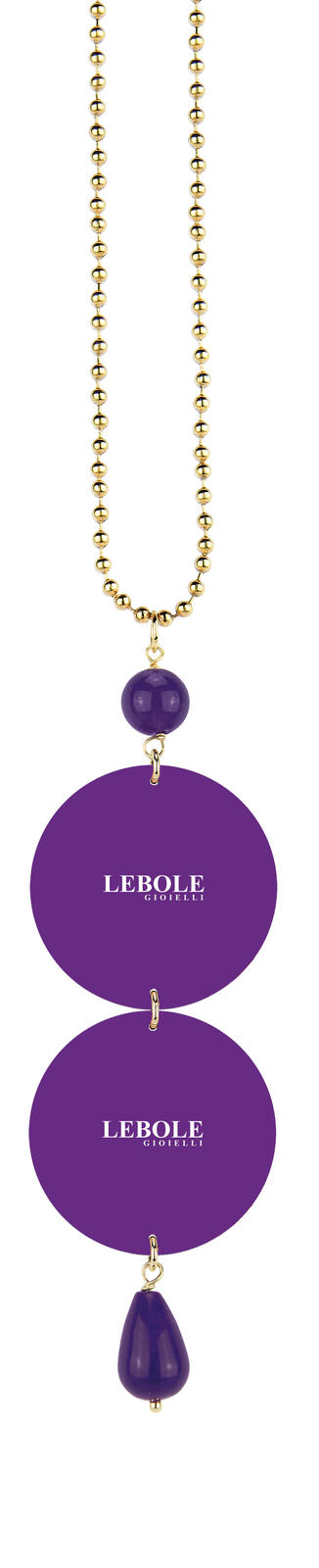 Collana con capsule The Circle e pietre. Catena in ottone bagnato oro, lunghezza 85 cm. Lunghezza ciondolo 16 cm. Diametro capsula 3,5 cm. Made in Italy