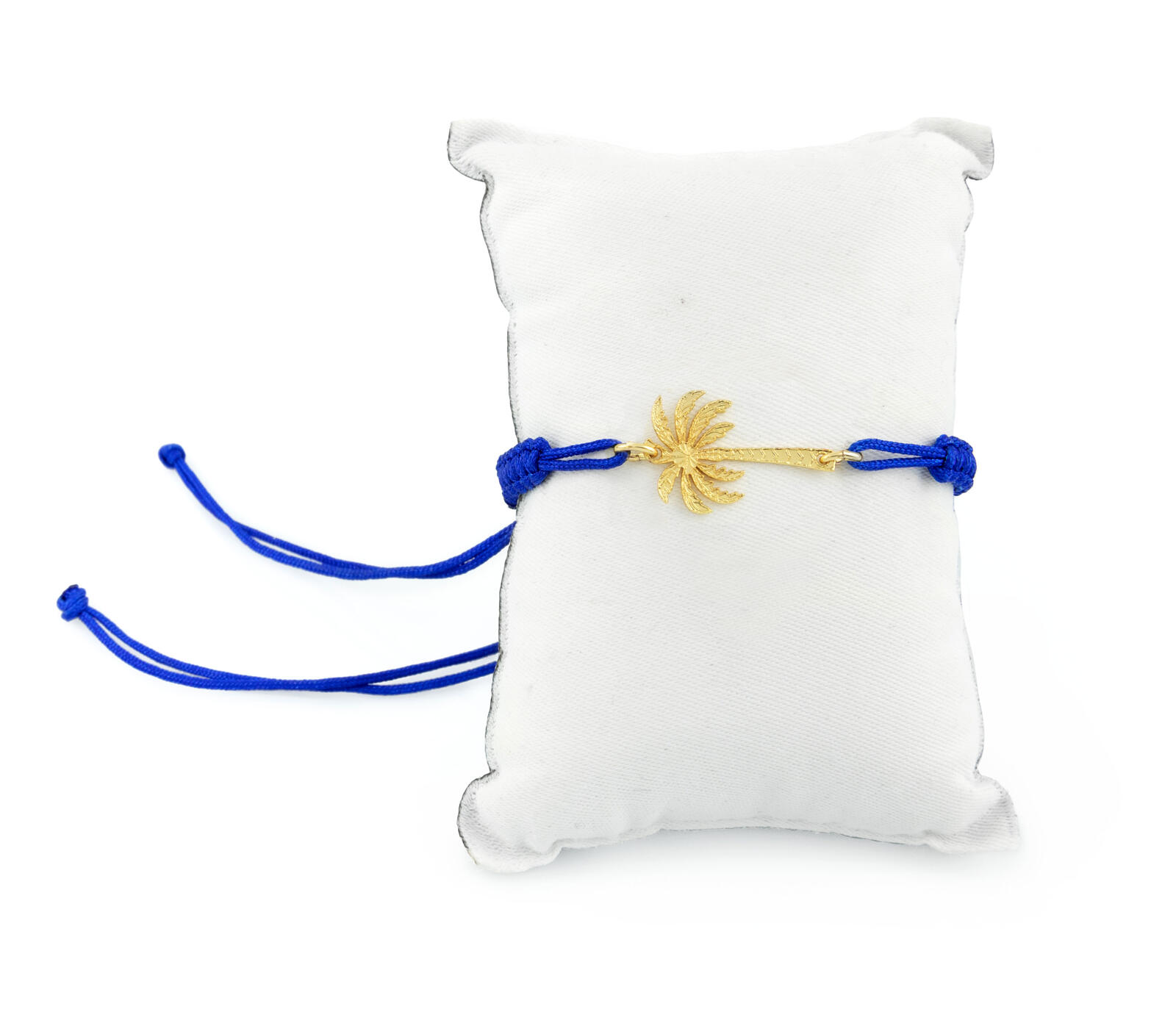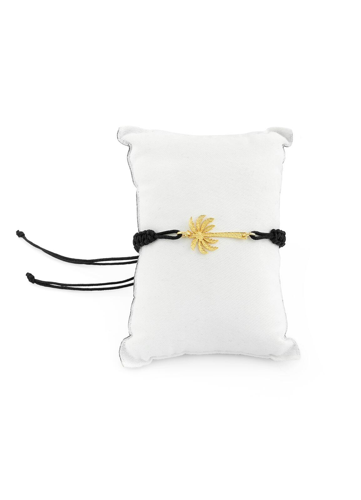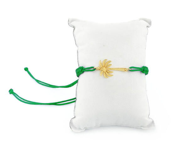 Bracciale sagola in tessuto. Elemento in ottone galvanizzato oro. Lunghezza regolabile. Made in Italy.
