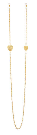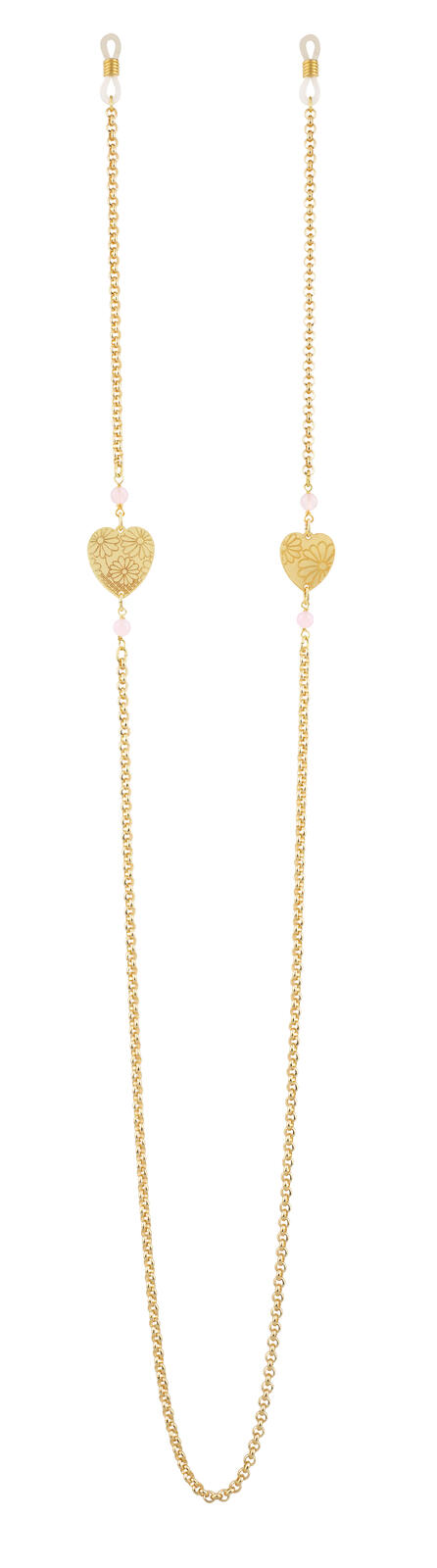Accessorio porta occhiali con catenella in ottone bagnato oro, elementi della collezione Micro Hoop e pietre naturali. Lunghezza catena 85 cm. Lunghezza elemento 2 cm. Taglia Unica. Made in Italy