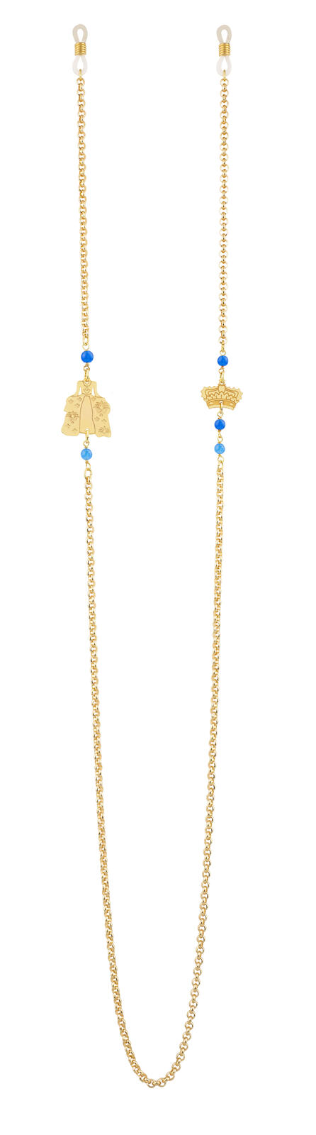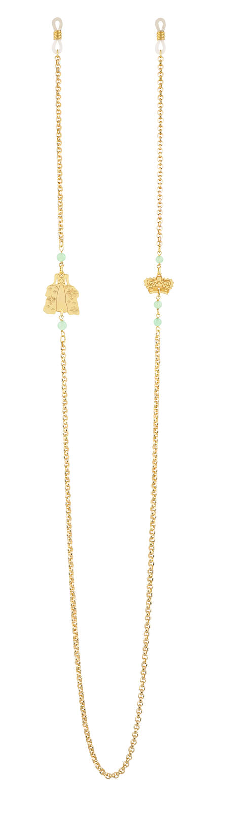 Accessorio porta occhiali con catenella in ottone bagnato oro, elementi della collezione Micro Hoop e pietre naturali. Lunghezza catena 85 cm. Lunghezza elemento 2 cm. Taglia Unica. Made in Italy