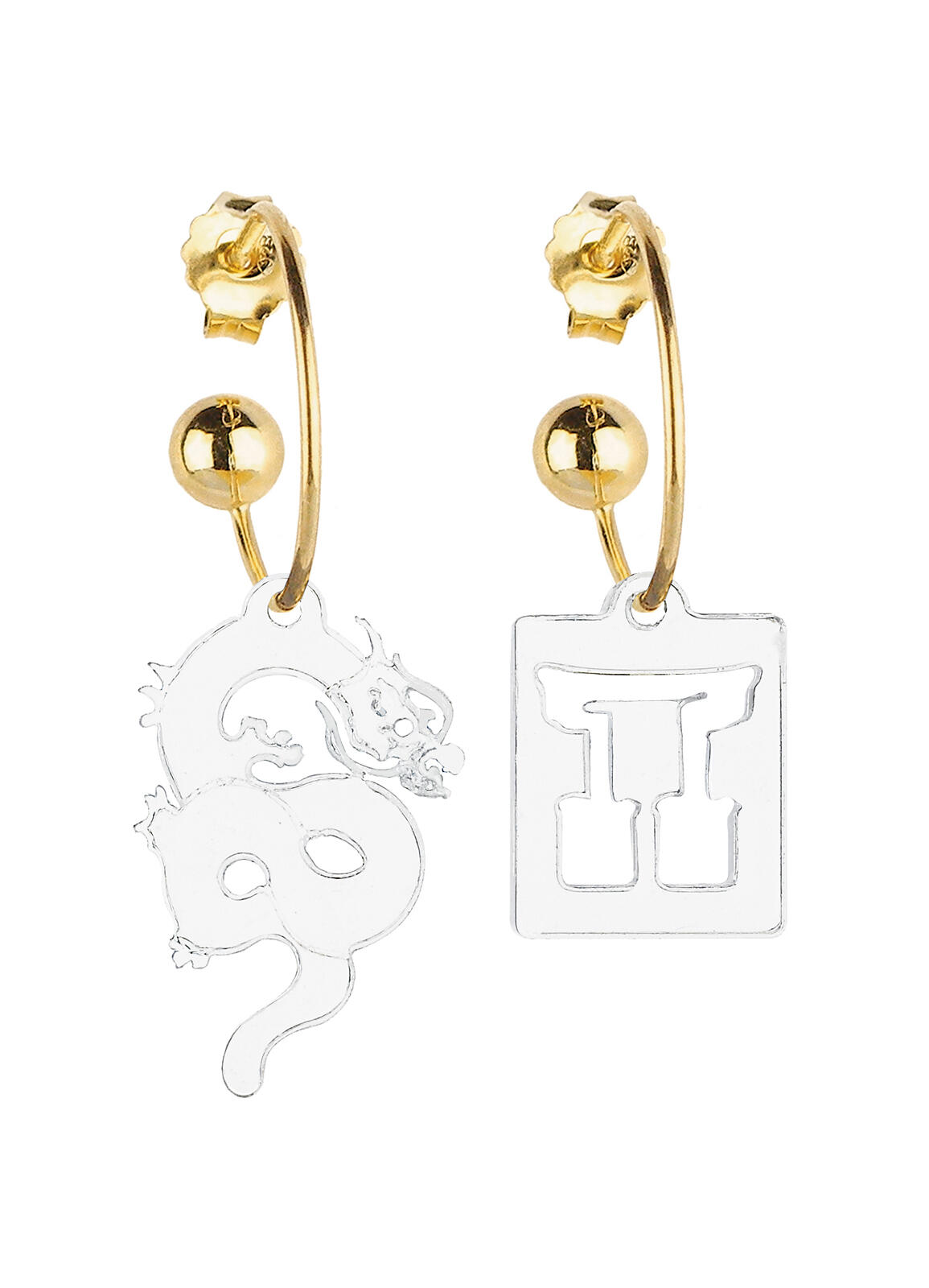Orecchini in plexiglas e ottone galvanizzato oro. Lunghezza 4 cm. Chiusura perno e farfallina. Made in Italy