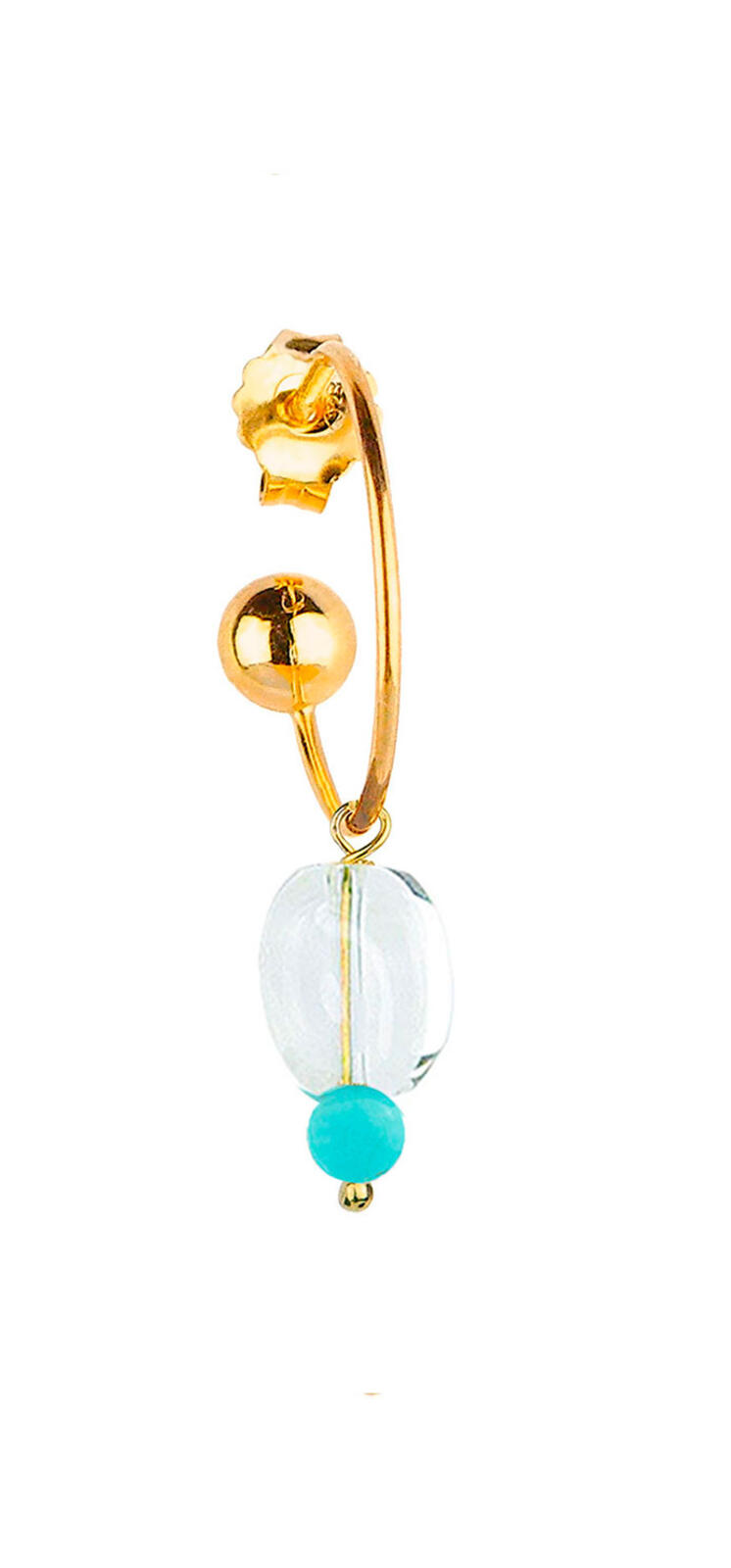 Orecchino singolo in ottone galvanizzato oro e pietre naturali. Lunghezza 2 cm. Made in Italy