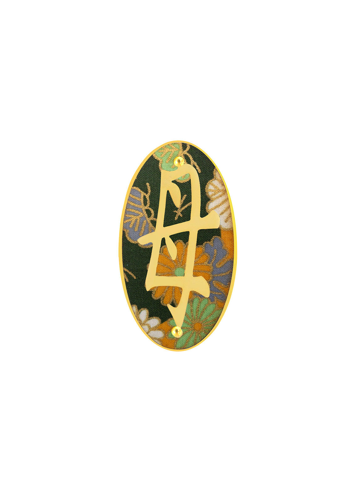 Dalle trame della seta emergono figure e colori che conservano la memoria del kimono originario. Ogni spilla diventa un piccolo racconto da indossare, dove simbolo e materia si incontrano in un equilibrio leggero e silenzioso.